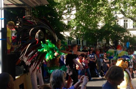 My friend and I bounced around quite a bit since the parade was somewhat slow-moving due to the vast amounts of people. However, it involved floats and groups featuring cultures from the Amazons to China to Peru to Thailand, among others. All in all I felt it was an awesome way for the people of Berlin to get together and celebrate this city’s multiculturalism. There was nothing quite like seeing the crowd dance along to music from the “Bengalisches Kulturforum” (Bengali Cultural Forum) and then just as eagerly to “12Volt & Friends”.