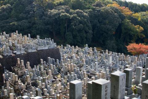 Possibly one of the biggest cemeteries I've seen. Burying one's ashes with the family's stone is the Shinto tradition.