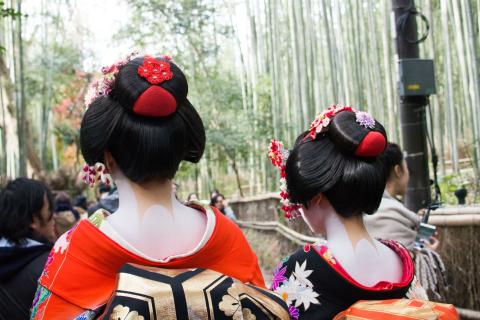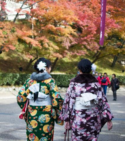 In Kyoto, you will see lots of young men and women wearing traditional kimonos.