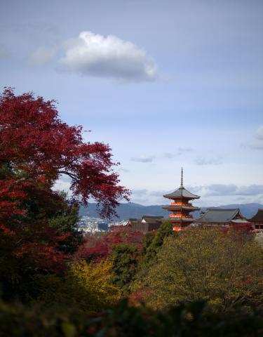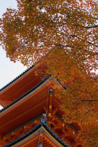 Painting the fall foliage is the only way for this man to spend his day by Kiyomizu-dera.