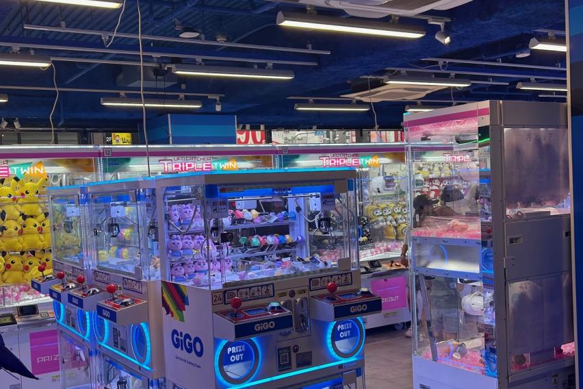 On the first floor of these arcades, the main prizes are stuffed animals and small keychains resembling characters, food, or animals. I’ve also seen small claw machines with wireless earbuds, lipstick, perfume, small toys, and candy. There are also large claw machines with large prizes, like giant stuffed animals and snacks (ramen cups, chocolate, candy, chips, and soda). But there’s also some more unique things, like the cheesecake lamp, pillowcases decorated with anime characters, different battery-operated toys, tote bags, metal water bottles, and coin purses. Usually on the second floor, there are more claw machines, with a variety of anime figures. They’re not impossible to win, if you keep trying! When you’ve gotten more experience with the machines, sometimes it only takes a few tries to win a prize.