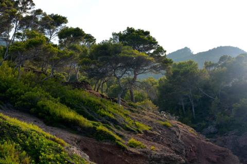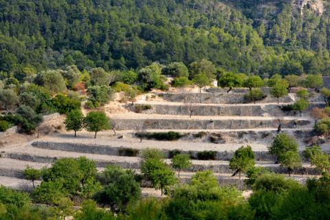 Terrace agriculture used to retain moisture in arid areas like on Mallorca, Spain