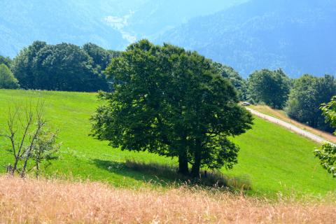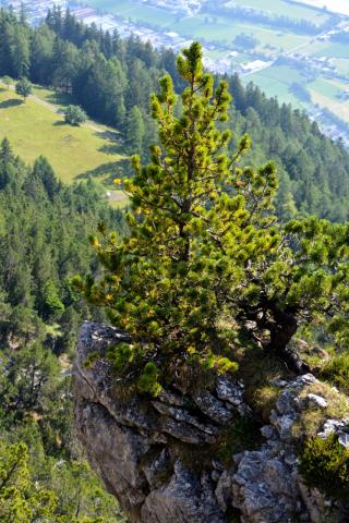 Tree growing on a precarious cliff edge on the Fürstenstein hike in Lichtenstein