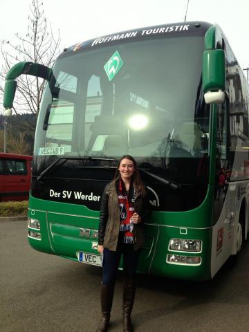 Outside of Werder Bremen's team bus at a SC Freiburg vs. Werder Bremen home game at Freiburg's Schwarzwald Stadion