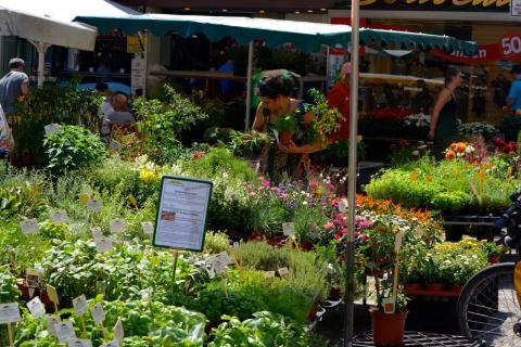 Stands and stands of plants sold at the Münster market in Freiburg daily - this is also where I could buy fresh produce and meats as well as grab a quick bratwurst for lunch