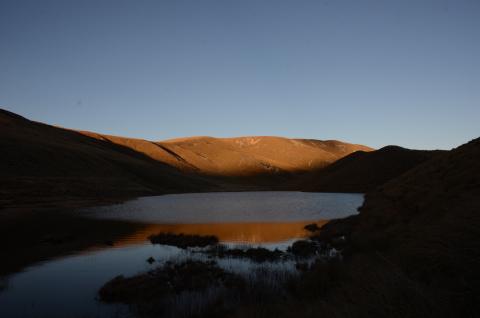The sun set while we were nearing the hut, providing great lighting over Mystery Lake, and we reached the hut in the evening. The hut was a single room with only the fireplace for light and heat, and two small windows. It was homey and it was small, and we loved it. After cooking dinner, setting up our sleeping bags and warming up by the fire, we went outside and enjoyed amazing views of the Milky Way before going to sleep.