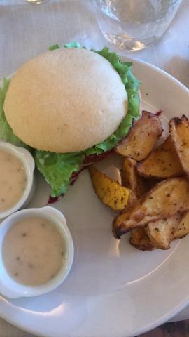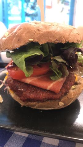 Vegan burgers (how REAL does that bacon look?!), croquetas, cheesy potaoes and more! Make sure to finish with the warm brownie topped with ice cream!