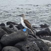 Punta Carola also has a lighthouse at one corner. The walk to the lighthouse goes through a lot of lava rocks, so shoes are recommended but not required – it’s not the sharp kind of lava. You can usually find marine iguanas, pelicans, and frigate birds near the lighthouse. Once, I saw a blue-footed booby sitting on the rocks, preening (pictures below, of course).