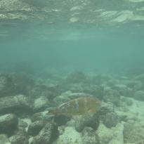 Between the rocks is a great spot to swim and snorkel. A line of buoys marks the boundary of the safe-to-swim area, so you can easily know if you’re in the right place. Of these beaches, Playa Lobería is probably my favorite place to snorkel. There may not be as much to see as at Darwin Bay, but the water is shallower and warmer, so you can stay in for longer (and something about being able to touch the bottom if needed puts my mind at ease). There’s usually a huge school of blue-barred parrotfish in the rocky areas near the shore. There is also a sea turtle cleaning station close to the buoys. Some other highlights from my snorkeling trips to Playa Lobería include hieroglyphic hawkfish, spinster wrasse, and a cornetfish (Google it! They look super cool and weird).