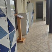 It’s typically a 15 minute walk to the university, but I give myself extra time to stop at my locker and drop off my swimming stuff. There are lockers both inside the building and in the quad outside. I picked an outside locker because of its proximity to both my classroom and the swimsuit rinsing station.
