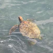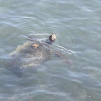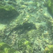 Punta Carola is a sandy beach with rocks on the sides. There is a big, sheltered patch of ocean that is good for swimming and snorkeling. There isn’t a huge variety of fish to see, but there are quite a few turtles and marine iguanas. There are also sea lions, so make sure to be aware of your surroundings and keep a safe distance from them.
