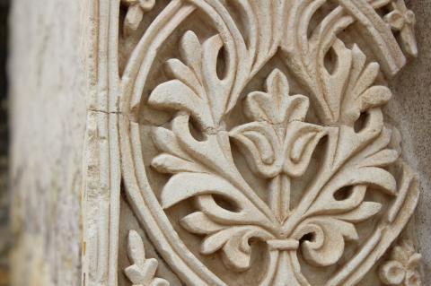 Vegetal patterns carved into the stone walls of the House of Ya'Far at the Madinat Al Zahra.