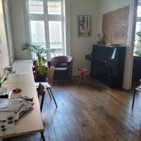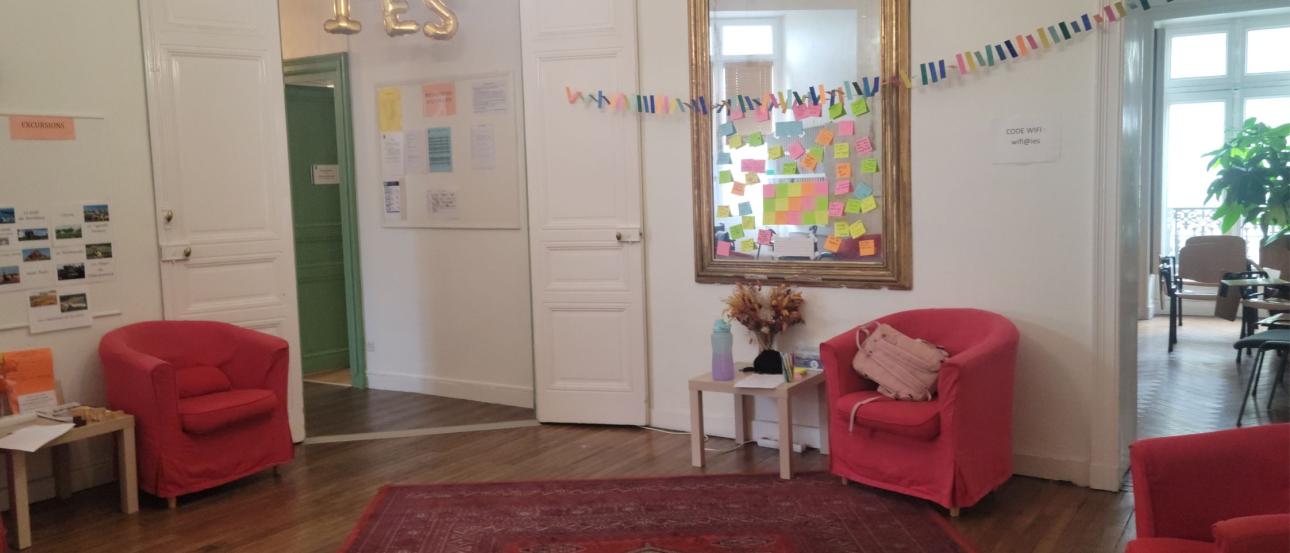 I have included images but my community abroad has primarily been formed within the IES Abroad Center. The entrance where we all first met each other, where everyone waits to be let into their class, the place where everyone catches up with each other. The kitchen, busy around lunchtime but a place of vibrant conversation and culinary creations providing a fridge, microwave, toaster, and microwave oven, it also has a stove and oven which can only be used with permission or for classes/programming. The library, a place I have spent many hours with beautiful views and vibrance on sunny days. It contains hundreds of books relating to IES Abroad courses, areas of study, and miscellaneous and general literature in French. There is a coat room, 3 bathrooms, and a student lounge with a TV and musical instruments for those wanting to do more than just academics at the center :) The IES Abroad Nantes Center has truly become a home for me and it has been convenient having the staff, library, kitchen, and programming all in one place.