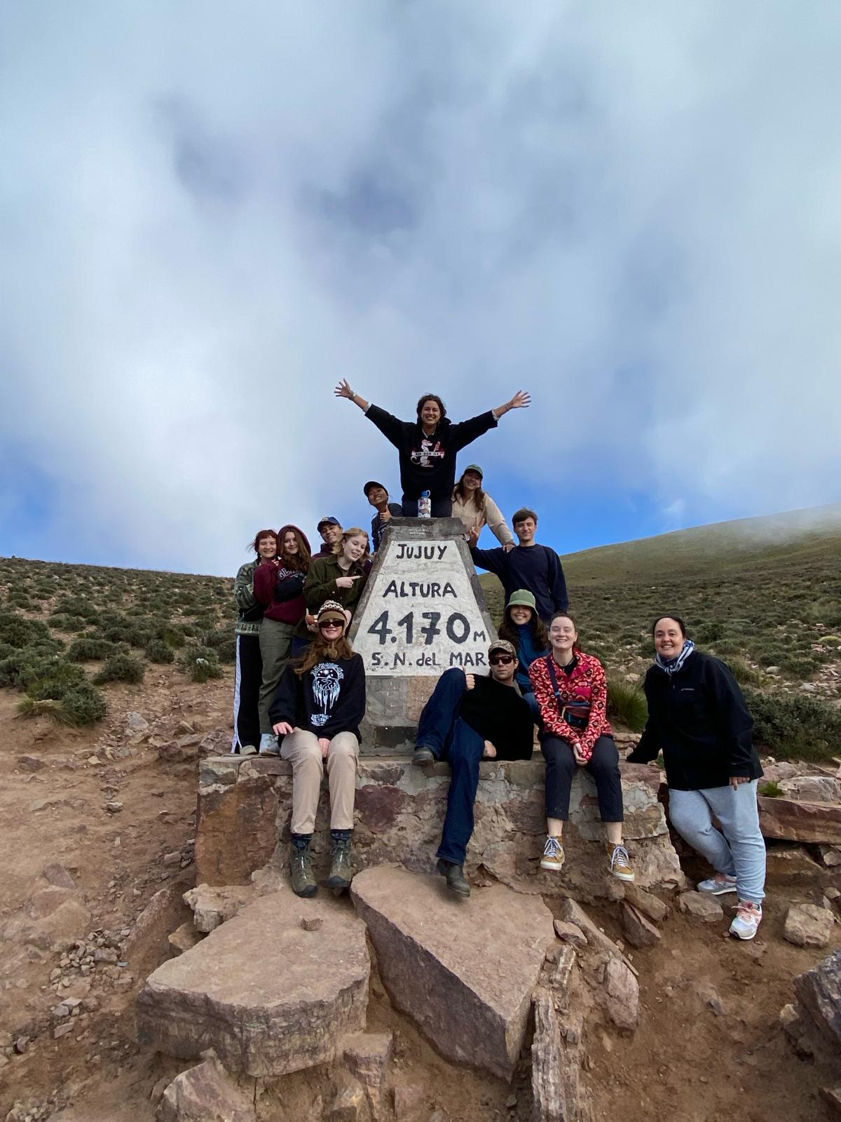 The energy was at a high along with the altitude as we had a full day of exploring! We eat our usual breakfast at the hotel and head to the mountains. After taking a group photo at the highest point of the region, we climb back down the mountains to a completely different scenery of the salt flats. After a picnic, we played to our strengths to learn the process of salt extraction where we worked with the axes and shovels. To extract a whole square takes twelve hours…a whole day's work! We finished the day off with a hike in the town of Purmamarca where we admired the colored stripes naturally forming on the rocks and wandered around the town square in search of souvenirs. In celebration of our last night, we feast over a delicious meal of a delicious hearty soup and a chicken and vegetable dish at a nearby restaurant.