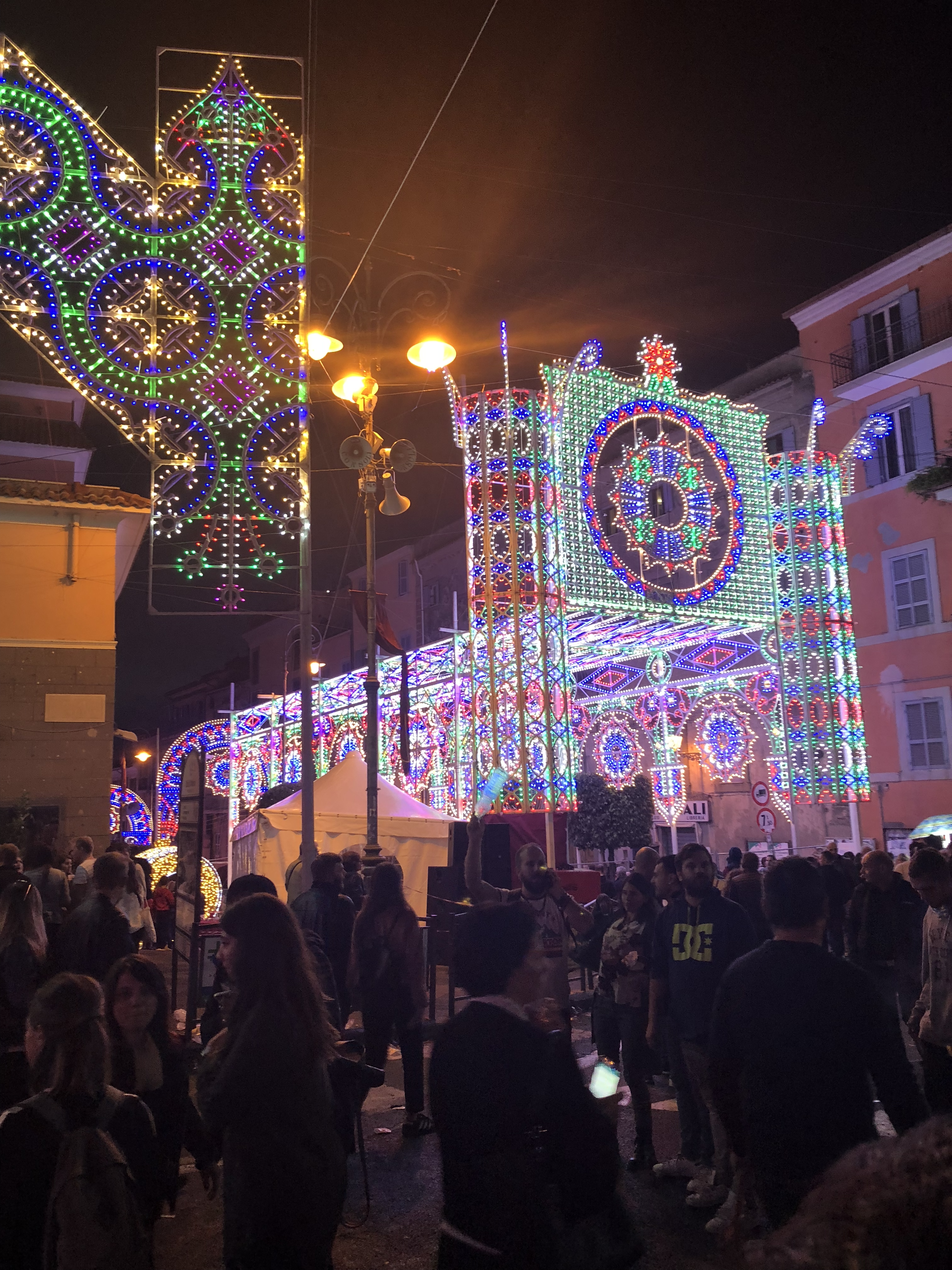 Just last week, I was worried about my Italian midterm and feeling prepared. It usually takes me much longer to read and study than most people, so I was extra stressed about having enough time. I stayed in Rome and found myself holed up in a café all day studying, feeling a little incompetent, but glad that I was getting some homework done. I had planned to study all weekend to make sure I felt good about my exam, but last minute, my Italian roommate invited us to a festival celebrating the patron saint of grapes in a small town outside of Rome called Marino. After doing quick research on Sagra dell’Uve, I found myself really wanting to go. But once again torn between experiencing Italy and studying. I ended up going, and I am so glad I did. The train ride was only a half hour and the town was so cute. It was all decorated with vines, grapes, lights and colors. THIS is what I imagined when I thought of Italy. The town was surrounded by hills, all terraced with vineyards and small colorful homes. Inside Marino, it was bursting with energy. It reminded me of the state fairs I used to go to every summer in Indiana when I was little and honestly felt very nostalgic. There were food vendors, tents selling spices in bulk, donuts as big as my head, and live music drifting through the streets literally stuffed with people. It felt as though every Roman under 30 was there. We wandered around, buying food, drinks, more food, and people watching, until we eventually reached the main square. A parade was running through the center, complete with giant floats of caricatured politicians and marching bands playing traditional Italian songs. I hadn’t felt so at peace and so excited at the same time in a long time. This is what I came to Italy for. To experience the real Italy, not just the things off a travel guide.