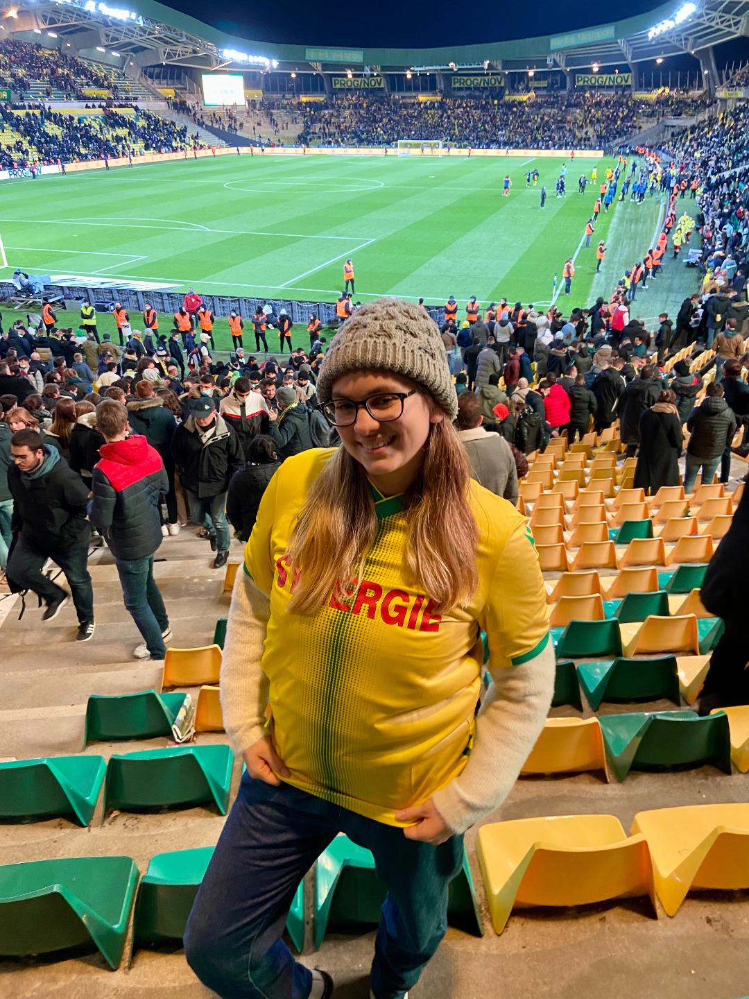 Something that I love about FC Nantes matches is the camaraderie among the people in the audience. I always chose to stand in the fan section of the stadium for this reason. Everyone is genuinely excited to watch their local team play and cheer them on. People of all ages gather for these matches, and I was able to feel a strong sense of community amongst the audience members. The fans put their arms around one another and proudly sing and shout the chants of their team in unison throughout the entire match every time, no matter if they are winning or losing. Even I caught onto some of the lyrics and tunes and was chanting alongside the French as best as I could by the end of the semester.