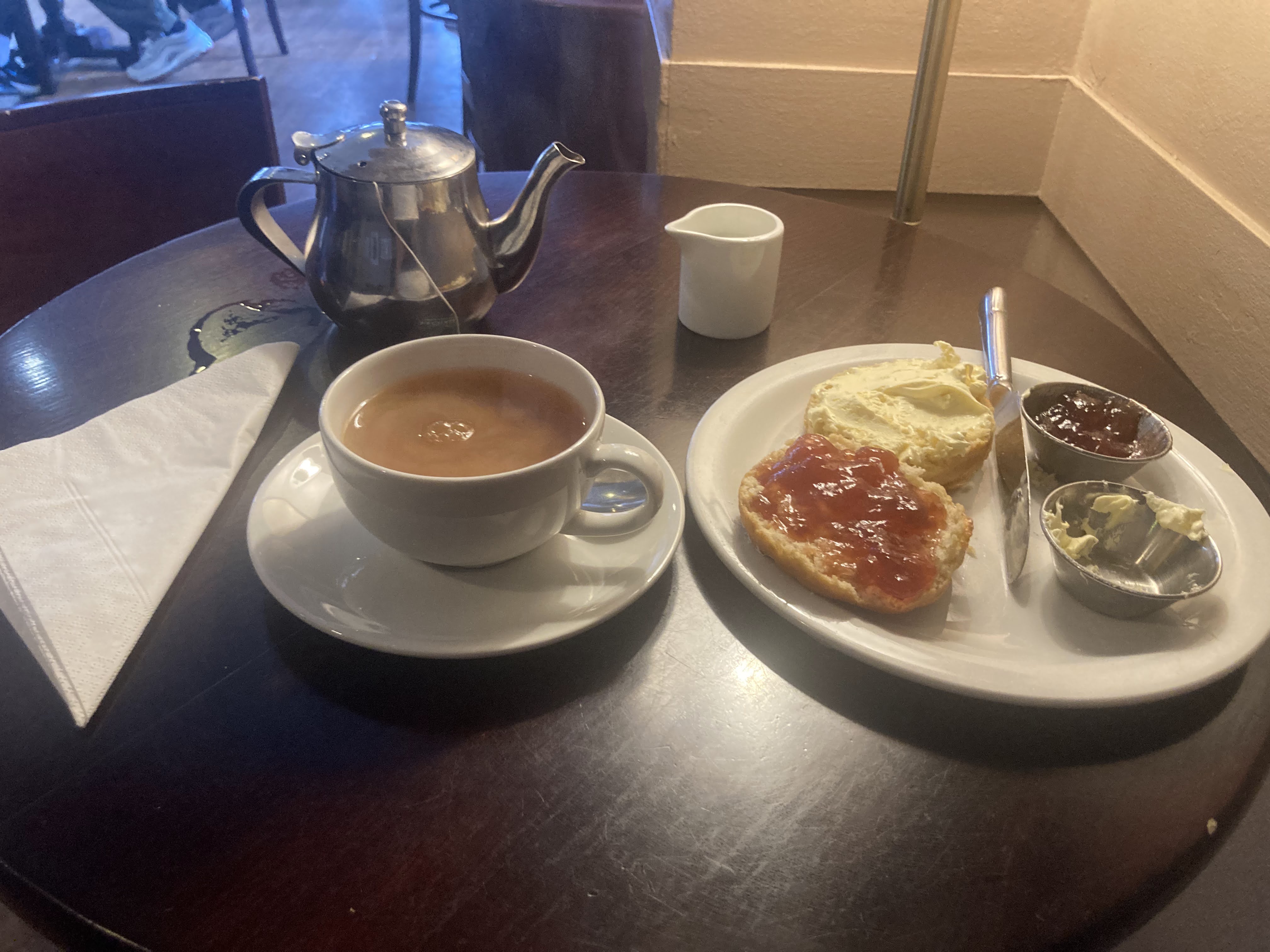 Cons- Quite far from St. Catz, so if you’re going from campus, it’s a walk. I didn’t see any wifi, though I did not ask any staff members. The plates were strangely shaped, and I spilled crumbs on the table. The scones also had raisins in them, which I don’t like (though this could be a pro for you!)