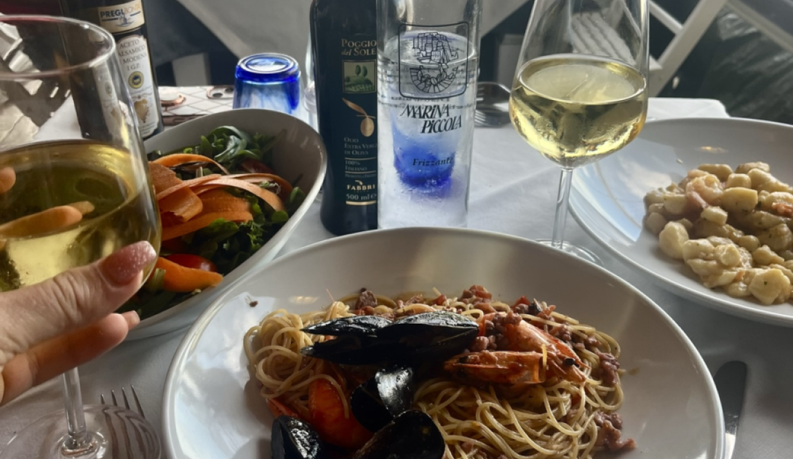 My absolute favorite place I have visited is Manarola in Cinque Terre. Cinque Terre is made up of five villages built right into the hillside; Monterosso, Vernazza, Corniglia, Manarola and Riomaggiore. I was only lucky enough to visit Manarola for one day, but I wish I could have seen the other towns or spent at least a week just exploring Manarola. Many people would recognize Manarola by the image of the colorful houses built into the hillside overlooking the water. I had seen the pictures and thought I was prepared for what the town would look like, but I was completely blown away. There is a beautiful walk down into the heart of the town where you are encompassed by colorful shops and locals strolling about. Once you walk all the way down, there is a clear view of the endless sea. I stopped at a restaurant overlooking the sea and got out of my comfort zone with what I ordered. I tried linguini pasta with muscles and crawfish. I surprisingly loved it! (If you know me, you know I’m not very adventurous when it comes to food). After this amazing meal, I hiked up to the viewpoint that overlooks the houses. I could have spent hours just taking in the scenery, but I wanted to keep exploring. I continued to hike and found a hidden grotto on the other side of the hiking trail. Most people were too preoccupied with the houses to notice the secret swimming spot. (Understandably so!) But I’m so glad I did. It was the best ending to my perfect visit to Manarola.