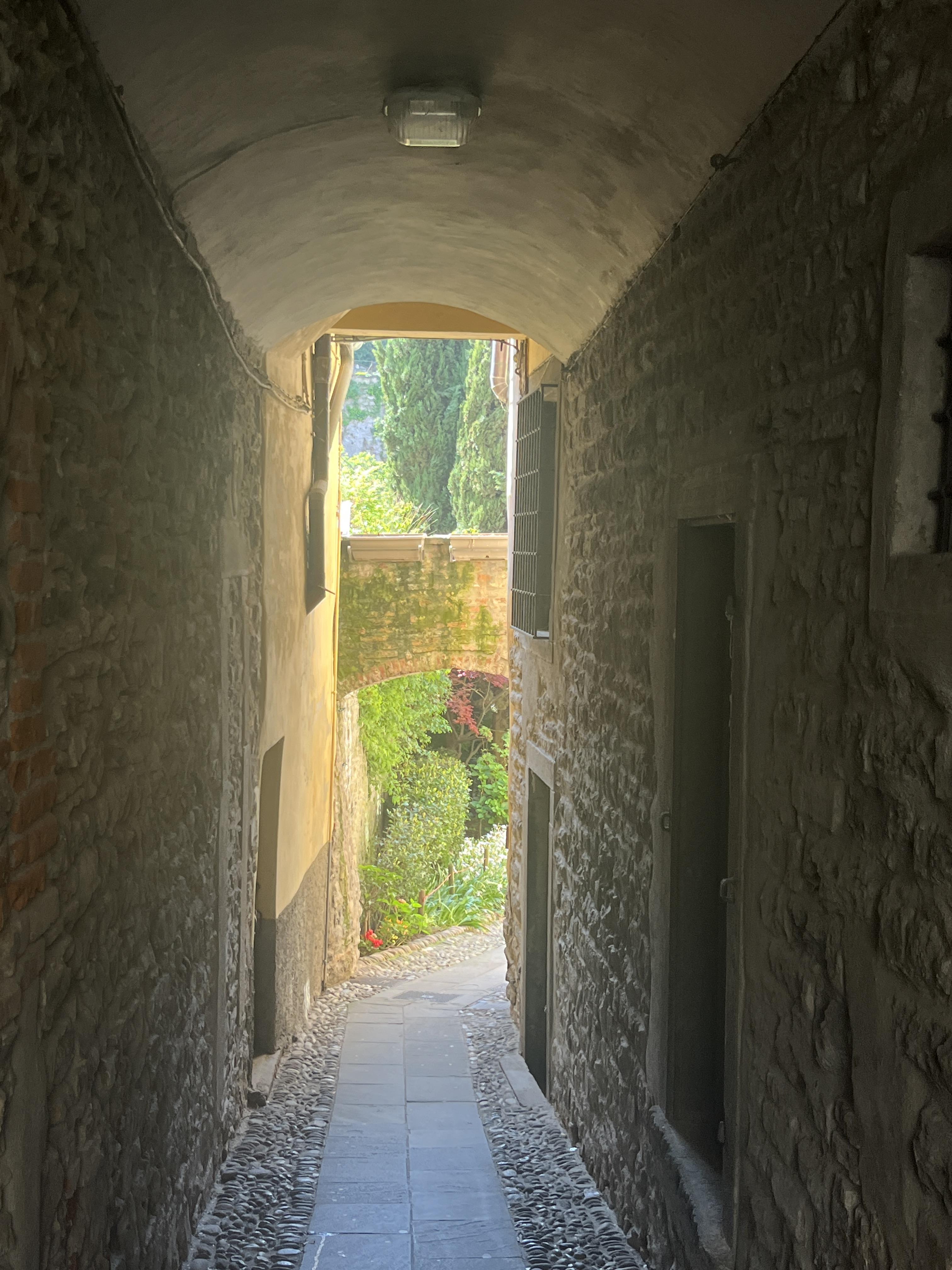 Bergamo- It was my solo day trip where I went around 2 p.m. in the afternoon and stayed there for about four hours. Bergamo is on a hill, and there are two or three famous Piazza. Again like any other Italian city, you will find a local artist playing an instrument and singing, a bunch of open restaurants, gelateria, and a few cute shops. Definitely fun walking around the narrow streets of Bergamo, and the view from the top is mesmerizing. I loved seeing grass fields and houses on uneven ground. I took a similar tram like Como that takes you higher on the hill for a view which I would recommend! I walked down the hill but the tram was also an option. Since it is a smaller town, there are very few tourists so you will save yourself some time by not having to stand in long lines!