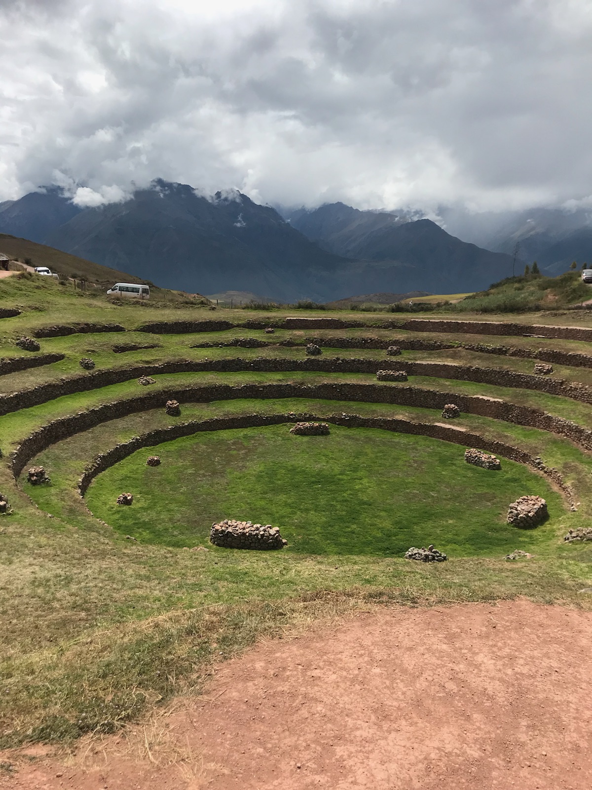 The day following our visit to Machu Picchu, my mom had arranged for a guide to show us around the Sacred Valley on our way back to Cusco where we subsequently caught a flight to Lima. One of the places this guide took us to was to the top of a mountain where the Incas had built beautiful ceremonial sites in the remains of sinkholes. There were four such sites, two of which are still in use. As we stood looking down on the smaller of the two, our guide told us how this particular one had the energy of the moon and it was used only by the women of the surrounding communities and that it was important that they always take their shoes off before entering. Just as he finished telling us this, we watched as a group descended into this sacred space, male and wearing shoes. I was outraged. I asked our guide, “does it bother the women in these communities that men and/or people with shoes enter here?” Essentially what he said was, “Yes, very much. But there is nothing they can do about it.”