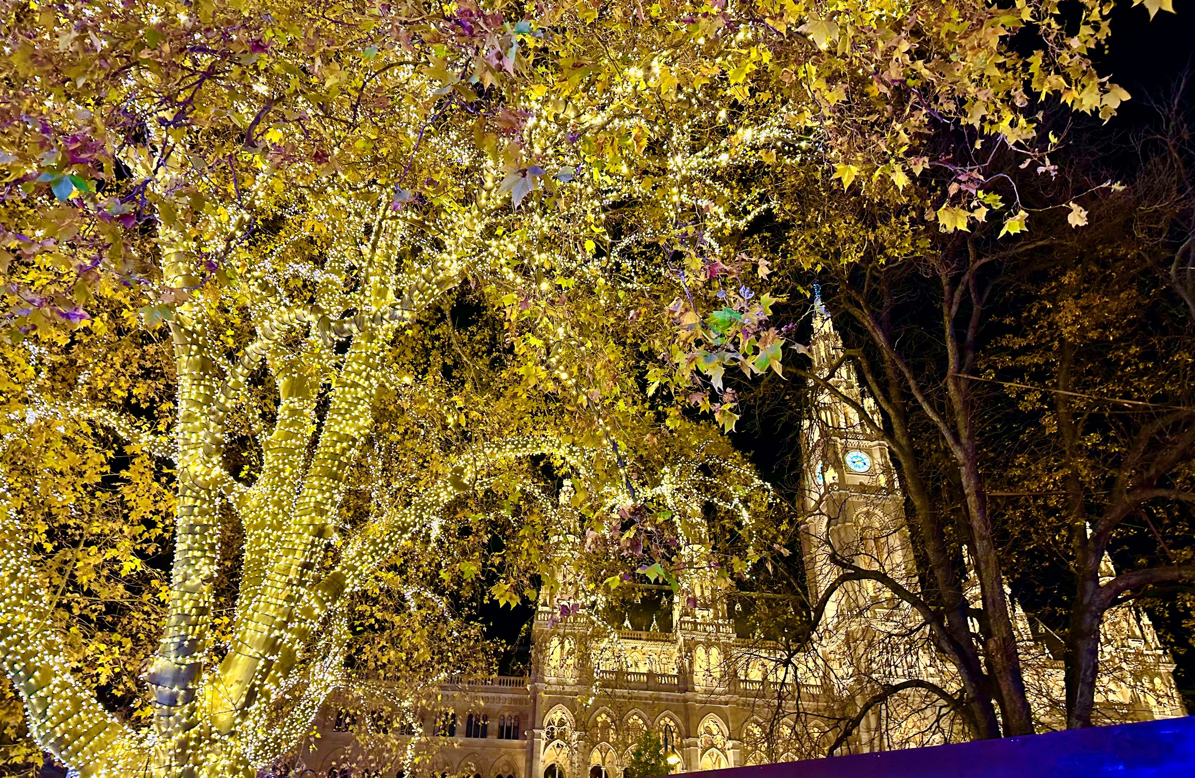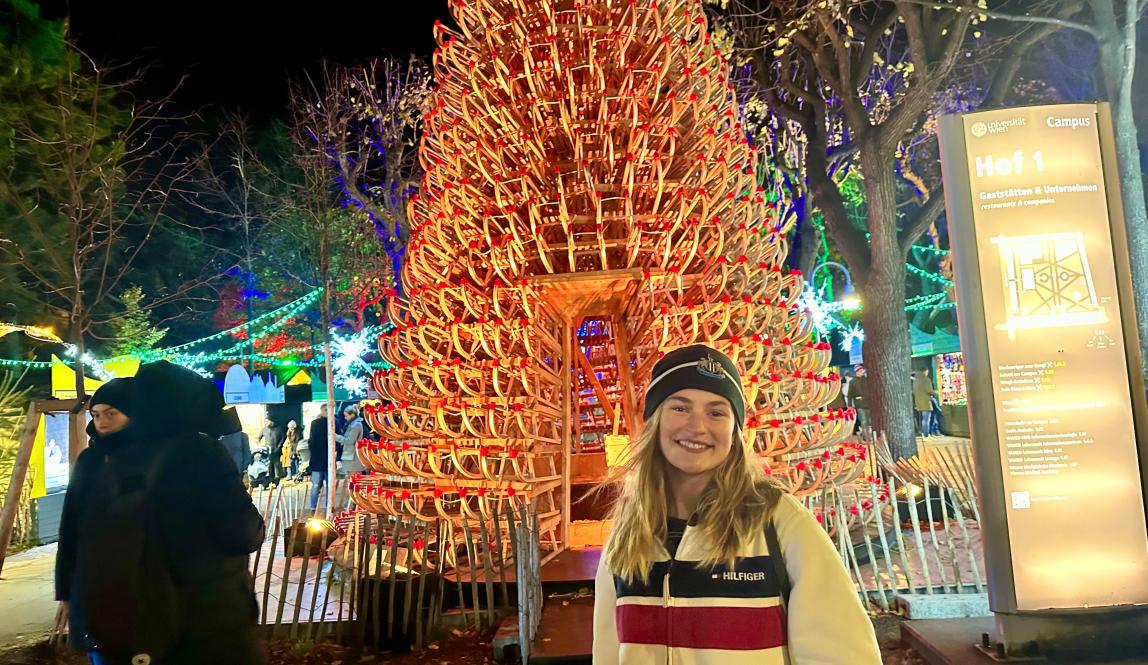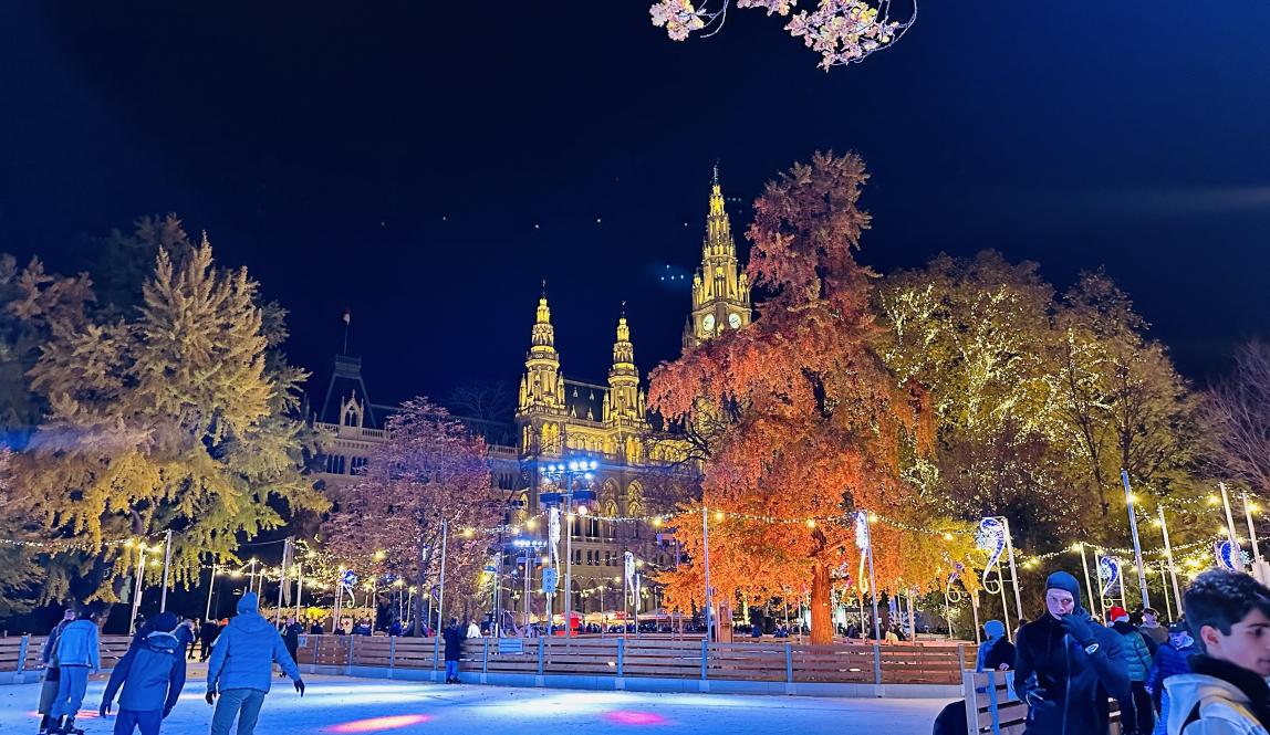 Finally, IES Abroad let us go off and explore the city on our own for the night, so I decided to meet some of my friends at the most lively Christmas market known as Rathaus. In the best way, I truly felt like I had walked into a Christmas-themed amusement park. This Christmas market truly had it all. The golden lights that illuminated Wiener Rathaus, the joyful cheer of carousel riders, and the awe of spectators from the heart tree all created a sense of wonder in me (and I assume everyone else who was there for the first time as well). It would not be the same without ice skating, and yes, Rathaus had a skating rink too (kind of...it was more of an ice skating track with a rink in the middle, but just as fun nonetheless).