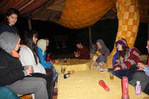 Thanks to two students who brought their guitars, we played throughout the night. Jeff Buckley’s Hallelujah, Mumford & Sons’ Little Lion Man, Marvin Gaye’s Stand By Me, Old Crow Medicine Show’s Wagon Wheel. We played the classics of today and yesteryear, screaming out off-key notes and unpleasant shrieks without a care in the world. We were in the middle of the Sahara Desert and I was happy.