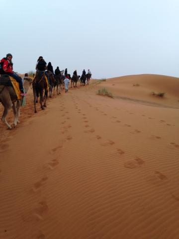 Of course I’ll remember the amazing Xaluca hotel in Erfoud, the long car rides, vista pit stops, playing with monkeys at a park, the desert jeep rides, the buffets, the gnawa musicians, and the camel riding. I’ll always remember leaving the campsite at midnight to climb the biggest sand dune I’ve ever seen and, after having finally reached the top, being able to see lights and cities of Morocco in one direction and complete darkness in the other, knowing that it was the Algerian border in that darkness, a mere 15 km away.