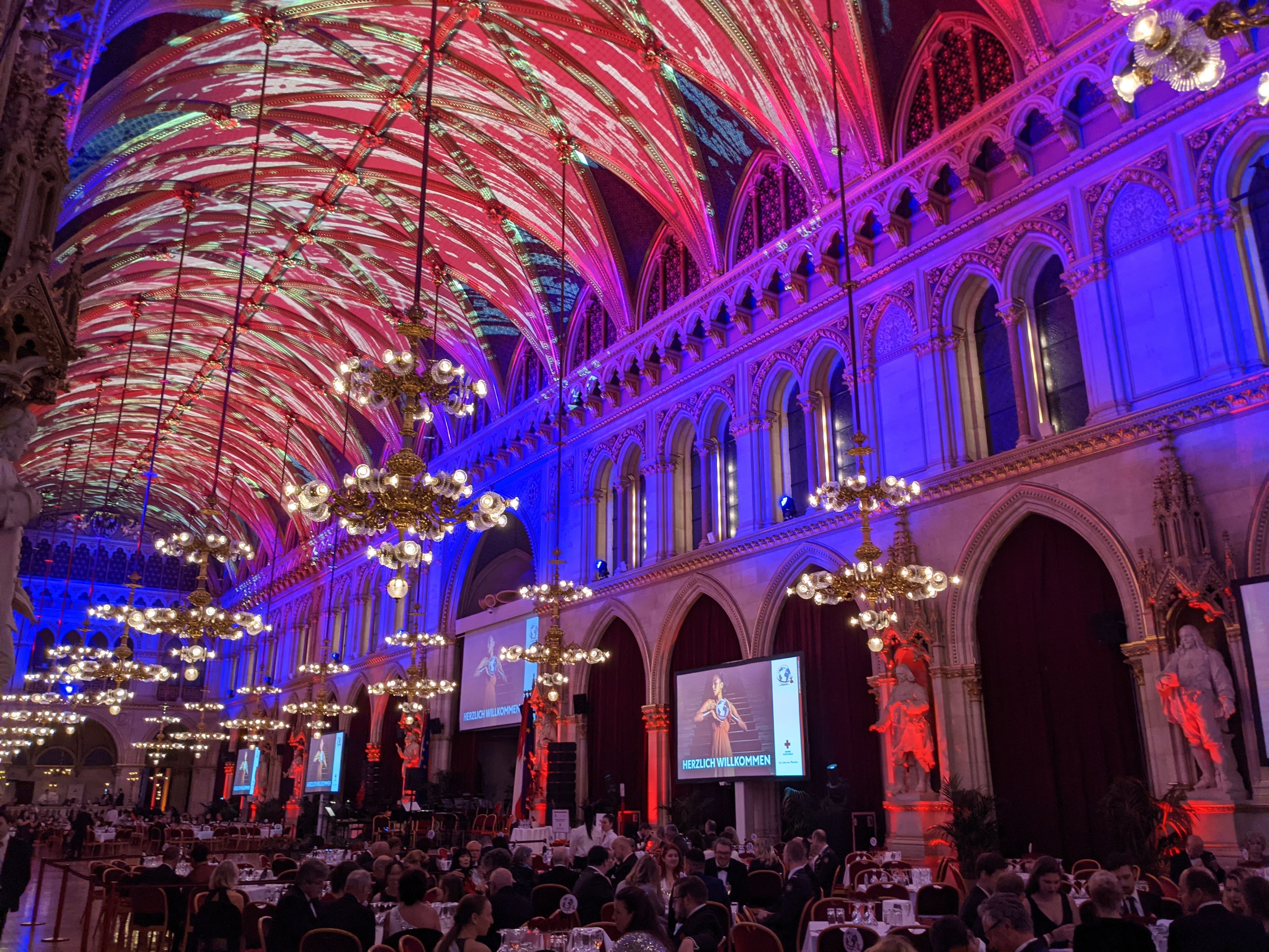 The ball began with an opening ceremony of many performances that included the Red Cross anthem, "I am from Austria," an interpretive dance, a flag ceremony, and the opening dance of the debutants. After the dance master announced, "Alles Walzer!" we waltzed to "The Blue Danube"—a dream!!—or at least tried to. No one knew what they were doing, but we watched the other Viennese dancers and tried to copy what they were doing. And just trying was plenty of fun!