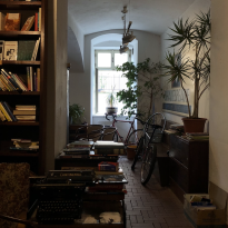 It was the actual mayor. It was an excellent tour. I saw the place where Čapek’s desk stood, and the ship-like cabin that was his bedroom, and the several miniature greenhouses where he kept his plants, and the wood paneled sitting room where the Czech intellectual and political group, “The Friday Men,” met each week to discuss literature and the state of Europe and probably smoke tobacco pipes. None of it was furnished, and I was wearing shower caps on my shoes to protect the floor, but there was a sizzling magic about the place like if I just opened that door, I would see Dašenka, Čapek’s jack Russell terrier, wagging her tail expecting a walk. The mayor explained that there is a team of designers working on the villa’s restoration so that it can eventually become a museum. The architect showed me floor plans of the original interior. I ran my hand along the back of Čapek’s sturdy wooden desk chair and gazed into the garden where the wisteria grew to the third story window. And when I left, I walked through the same door which Nazi officers did when, after the German invasion of Czechoslovakia—two months after Karel Čapek’s death, they tried to arrest this author, this keeper of plants and goldfish, this “public enemy number two.”