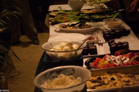Night 1: When we first flew into Raratonga we didn’t have much daylight left. The highlight of this day was the dinner. It was raining when we arrived so they had to move our tables under a tarp, but we sat at one long table that fit all 24 of us, and took our shoes off since we were having dinner on the beach. The meal was buffet style, making me very happy, and I definitely went back for seconds, plus dessert.