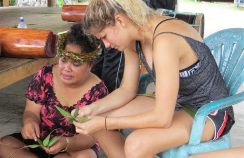 After this we made our own skirts by painting material that was lying on a stencil. We also made dinner plates out of leaves to use for our dinner that night. We also had our first lesson in Raratongan dancing, which I think is very similar to Hawaiian hula dancing.