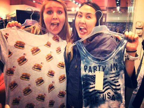American Things! Hear me out – the French are also really into things in English or garments covered in American flags. Would you buy a sweater covered in cartoon hamburgers? Well, guess what, the French would. I most recommend purchasing clothing that uses incorrect English or makes absolutely no sense because, well, you can’t get that in America can you? Or – and this is by far my best advice – get on a random metro, get off at a stop you’ve never heard of, walk through winding streets until you find a miniscule shop with vintage furs and pink stilettos, sift through costume jewelry while the storeowner talks to you in French about whether or not calzones are the same as pizzas, and buy something that just happens to catch your eyes. Because clothes are great, but clothes with memory and adventure attached are even better.