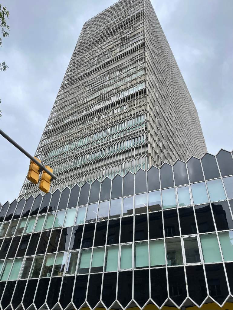 The area along Avenida Diagonal at the corners of the Left Eixample, Sarrià-Sant Gervasi, and Les Corts districts is one of the densest sections of office buildings in the city of Barcelona. While the district is similar in many ways to office areas in the United States in it's sometimes interesting, sometimes extremely neo-liberal feeling of 1980's architecture, it is crucially different in the scale of its buildings, position in the city, and uses. By looking at this area, we can identify many ways in which European cities are planned differently to American ones. To begin, this central office area is obviously not in what many would consider to be “downtown” or “central” Barcelona—this would probably be Plaza Catalunya or Via Laitana or Passig de Gracia. Instead, the Avenida Diagonal business corridor is at the top left of the Eixample, along the border of many higher income or gentrifying neighborhoods in the city. Unlike in American cities, where downtowns are more clearly definable, centrally located, and visible from their skylines, one could go nearly their entire semester exploring Barcelona to never really explore this area (as I did). Additionally, most cities in America do not have their central business area bordering some of the most expensive real estate in the city: wealthier people typically have opposed tall building development near their houses and live further outside of the city center. Finally, the business corridor, while it has underground parking for private cars, is completely accessible by transit such as regional trains, local trains, trams, and buses. This results in an area that is more walkable, better integrated into the city around it, and one that can support more local businesses such as luxury shops, cafes, supermarkets, restaurants, and bars. To see how different this area is from the downtown of the city in America you’re closest to, I recommend making a visit (and see beautiful Parc del Turó while you’re there).