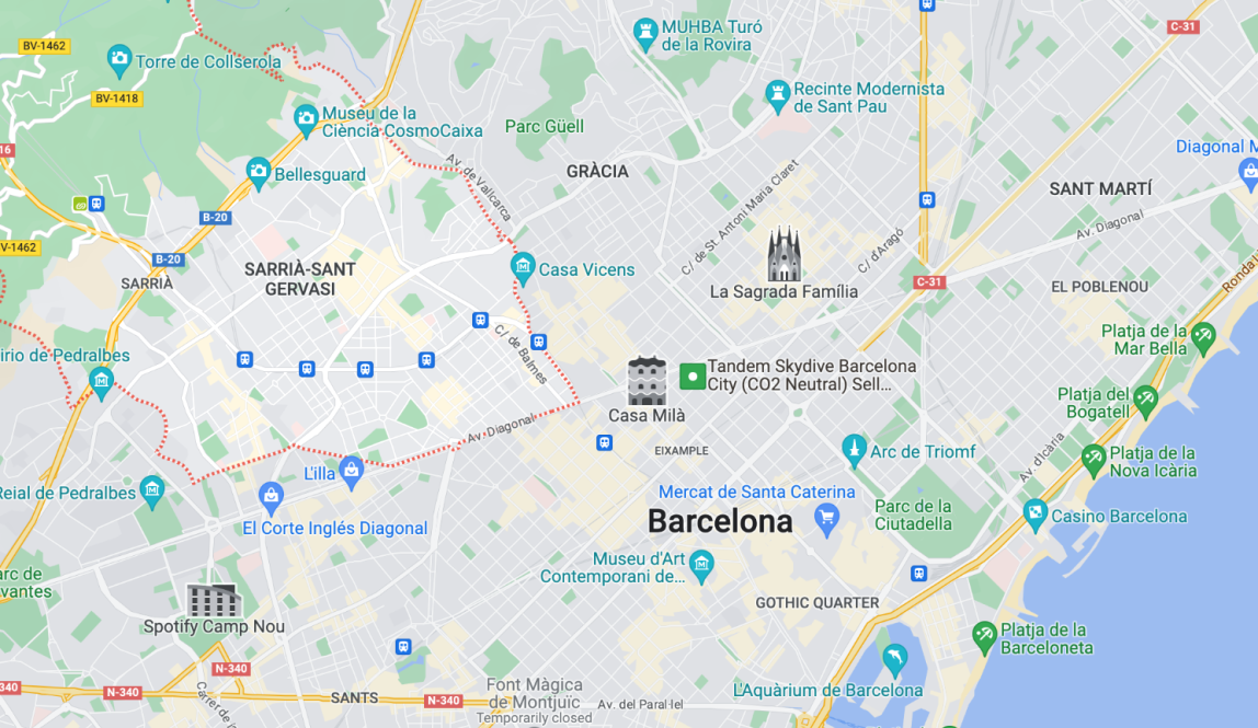 It took me until my last week in Barcelona to discover the beautiful area of Sarrià-Sant Gervasi. Located next to Gracia and between the mountains and the Left Eixample, the area is one of the richest in Barcelona. Some areas are more typical dense development, with mid rise apartment buildings and local shops below. Others have setbacks from the sidewalk, with a row of trees, grass, or even hedges in the least dense areas. And even others have full walls around their large estate properties, with their own gardens and large houses inside. After walking around Barcelona for four months, I thought I understood what most of the city looks and feels like to walk around in, but these areas are very different.