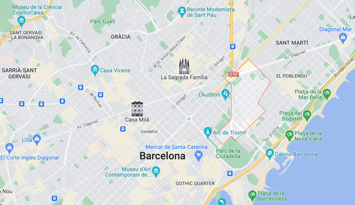 As the new center for Barcelona’s tech industry, the city has encouraged rapid redevelopment of the area through tax breaks in the area known as the @22 innovation district. Noticeable mostly for its skyline, with the cone shaped building and smaller skyscrapers next to it, the area is also known for having many clubs and bars such as Razzmatazz and Ovela Negra. There are also several great museums, a beautiful campus of UPF, Glories Mall, and Glories Park.