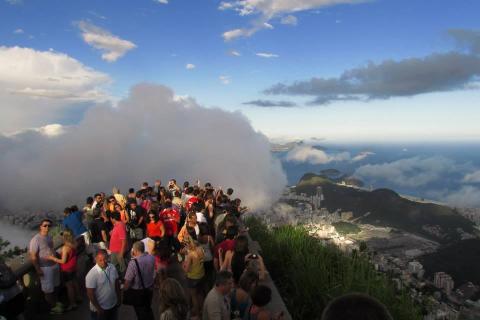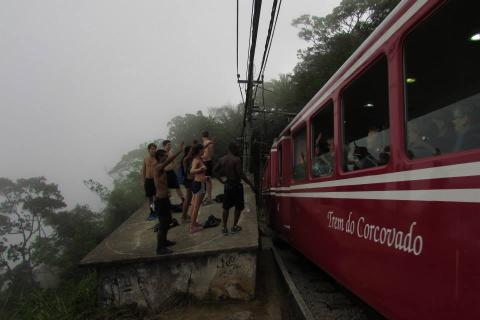 We were encouraged by the passengers on the train up the Cristo Redento statue: they were waving and cheering us on!