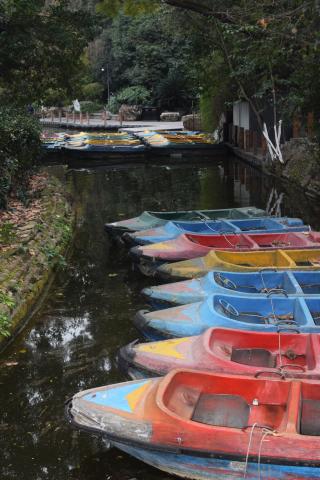 This colorful array of boats was found accidentally after getting lost in Peoples Square/Garden in Chengdu. They were sitting outside an enormous outdoor tea shop that was packed with tables and people and added just a splash of color to the cloudy day.