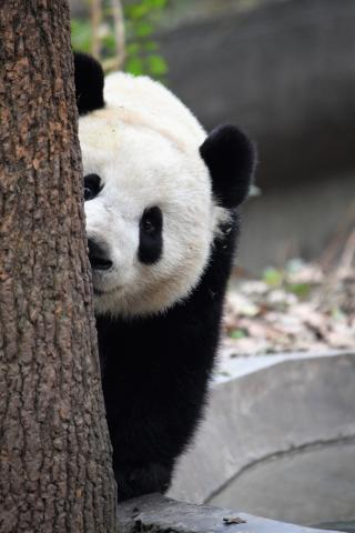 One of the major tourist attractions of China is the Chengdu Panda Research Base. The research base hosts the largest number of Giant Pandas compared to any other facility. You can see baby pandas, adolescent pandas, and adult pandas. Any age of panda you want. This is a picture of a curious little young adult panda peaking around a tree at me and all the other onlookers gathered around his exhibit. Shortly after this was taken he tried to scale that tree, failed, and with all dignity intact plopped down on his rump to continue his unending bamboo munching.