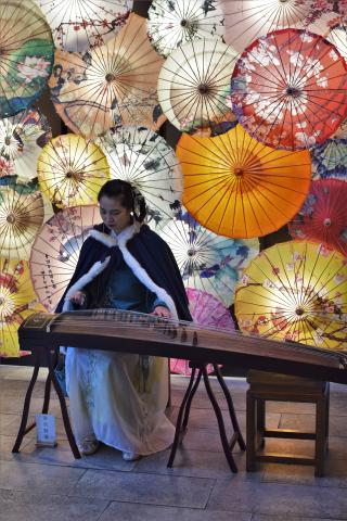 I was walking the Wide and Narrow Alley in Chengdu, a couple famous, old architecture pedestrian streets when I came across this. Many of the shops along the wide and narrow alley have people yelling, playing instruments, perfecting their crafts, or beautiful artwork just inside their doors to lure the customers in. This woman was beautifully plucking away at the strings which could be heard long before reaching this shop. At the storefront there was a crowd gathered just listening to her play and milling about the shop.