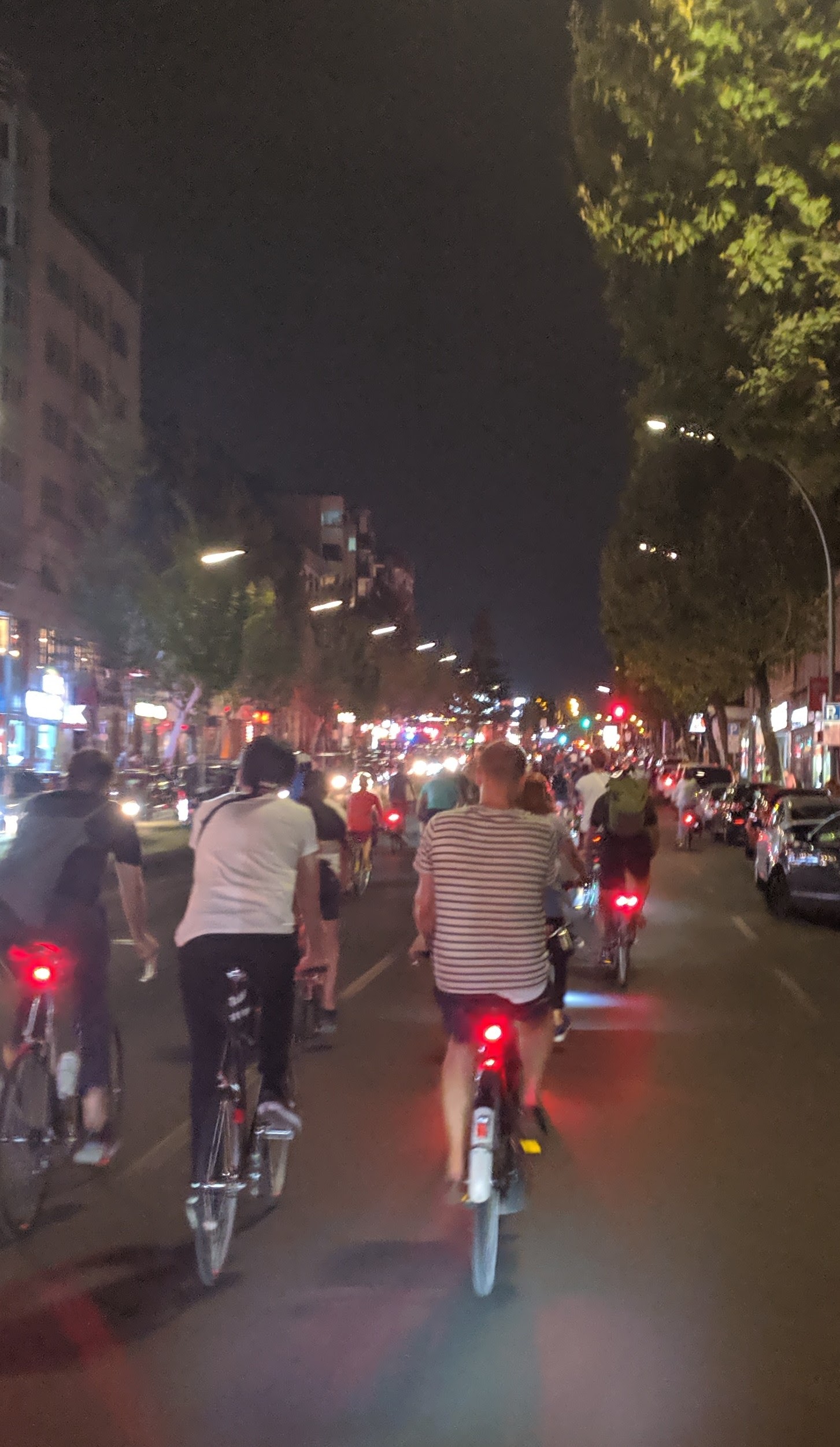 I looked it up on my phone and found an article on the gratis-in-berlin website that explained that this Critical Mass would ride through the city, and while the main idea was to promote commuting and stand up for bikes rights to the streets, many people just participated to have some fun and to be together. I thought, what am I doing standing here watching? I have a bike!