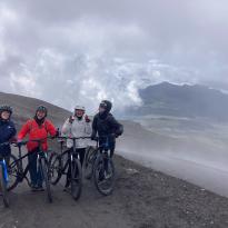 The thrill of riding fast down one of the most beautiful landscapes I had ever seen was unmatched. I had missed biking tremendously, and getting back on the saddle in such an epic location is something I will cherish as one of the best moments in Ecuador. We bounced over rocky terrain, shaking our hands every few minutes from the cold, and stopping every now and then to admire the incredible peak behind us. With the distance that was now between us and the summit, we could even see the clouds of brown ash that were blowing out of the crater. We had just hiked an active volcano.
