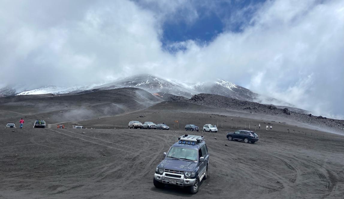 After ascending the winding, rocky road we finally reached the trailhead. A viscous wind grabbed us as we got out of the car and prepared for the hike. Our guides tied up the bikes we would be riding down the mountain on our way back after we completed the hike. I was a little unsure about biking in such strong winds, but that was a problem for later. It was time to hike this volcano.