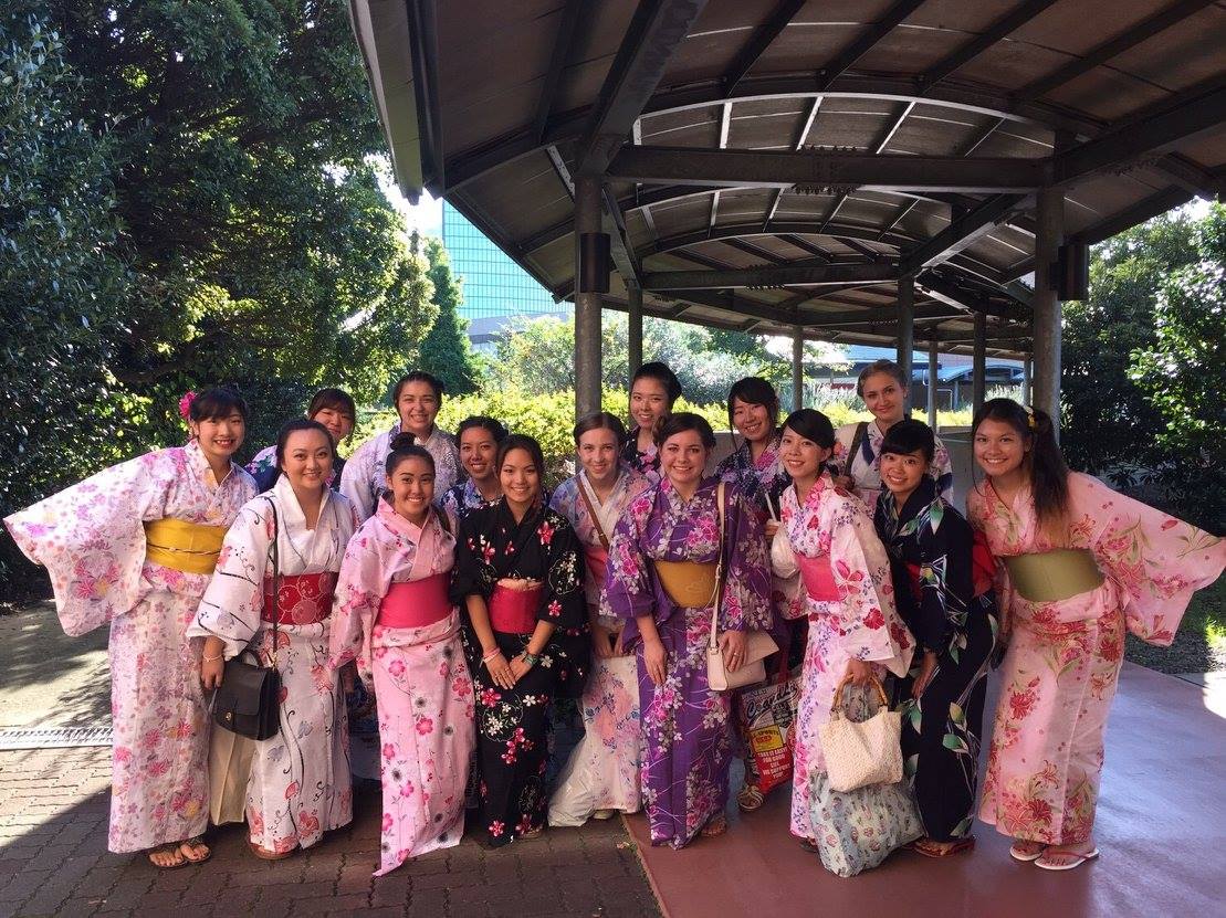 On the day of the festival, we all met in SALC (English Learning Center) and stood like mannequins as our e-pals busied themselves helping us get ready. I watched as Mariko-san walked around me in circles, folding, looping, typing, and cinching the fabric in place. I sucked my stomach in as she pulled my obi in tight against my ribcage, and attached the bow to the back, adjusting everything from head to toe. Finally, she set upon saving my hair from my messy-side braid, somehow wrangling all my loose strands into an elegant updo. I helped by passing her bobby pin after bobby pin, feeling her secure her hard work into place, before tugging out a few loose strands to frame my face.