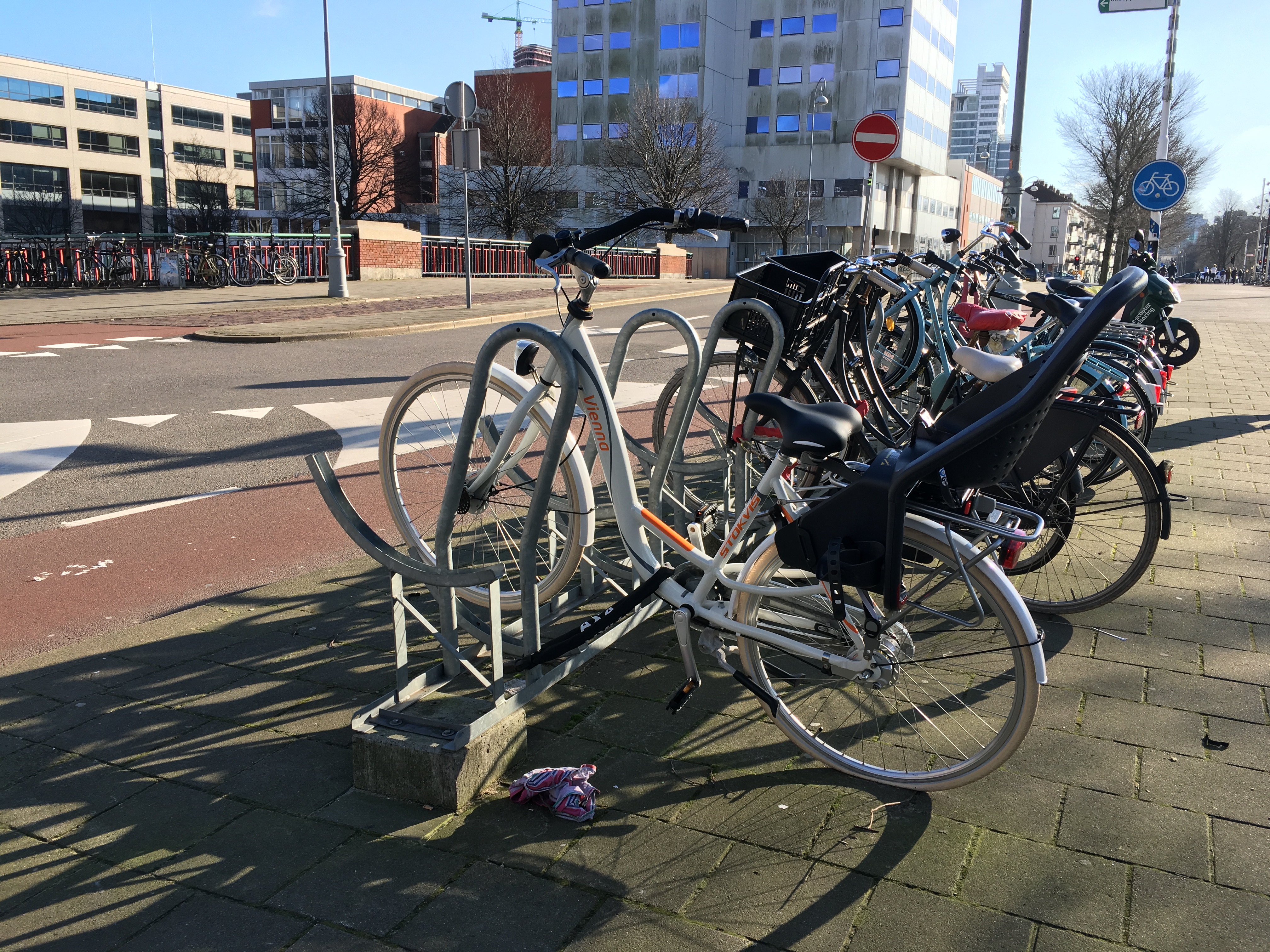 Next step is to learn how to lock your bike. This may seem pointless, but on average your bike will be stolen about once a year (according to my Dutch classmates). Since study abroad only lasts a few months, you'll most likely be fine. But to ensure this, you need precautions. Aquire two locks: one small circular one for locking the back wheel to the frame, and another long chain locking the front tire to the frame and to an exterior surface, such as a bike rack or a friend’s bike. You can purchase these at a variety of bike stores throughout the city. Even if your rental bike comes with one lock, it’s recommended to get two locks and ensure both wheels are locked to the frame. Remember to always lock your bike! Seriously!