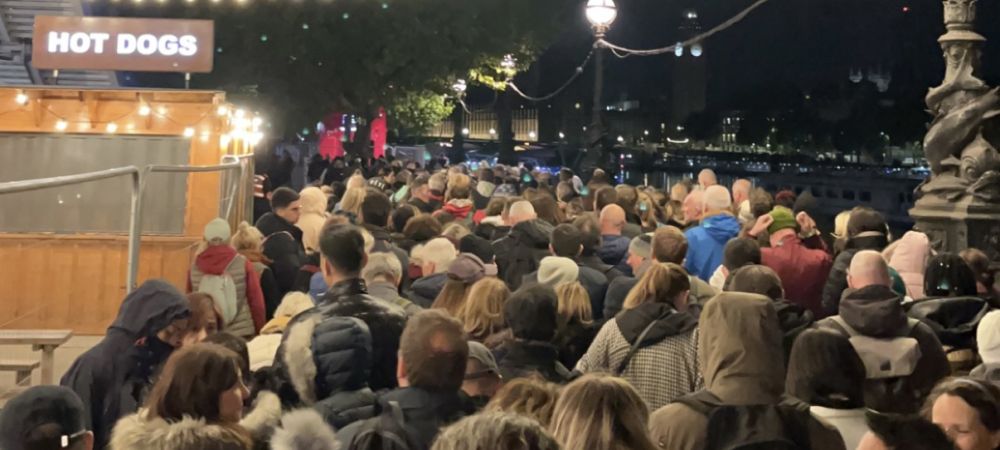 Last week, I joined hundreds of thousands of people in the queue to see Queen Elizabeth II lying in state. After her passing, the Queen’s coffin was brought to Westminster Hall in London, where, for five days, people were allowed to walk through the hall to view her coffin, draped in the Royal Standard flag, topped by the Imperial State Crown and the Sovereign’s orb and scepter. The experience became international news, not really for the lying in state itself, but for the incredibly long line to view it—at maximum, it was a 10 mile walk with an estimated wait time of over 24 hours. I wasn’t in the line at its longest, but I spent plenty of time walking the Thames in anticipation of what I’d see, and I’d argue that the experience of the queue was more impactful than the view at the end of it.