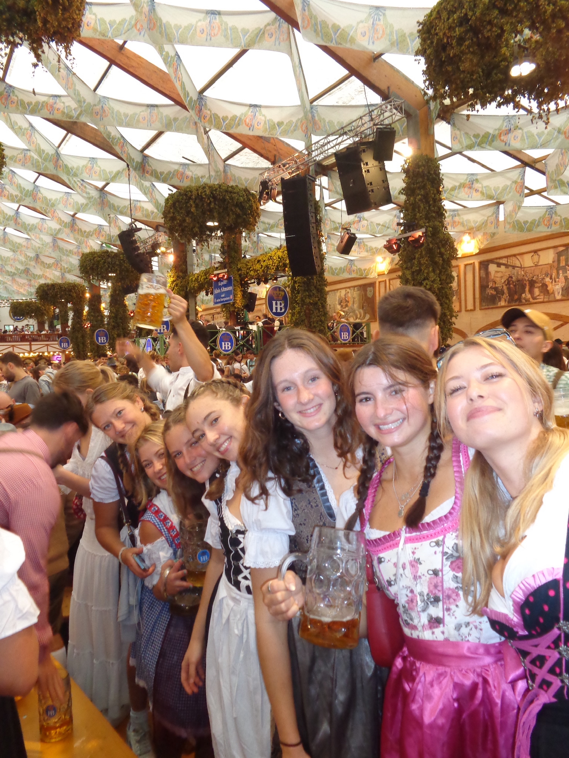 Friday morning, we took the train from Salzburg to Munich and rented dirndls from shops right outside the train station. Some friends got in line at 8 A.M. and were able to get a table for 16, so we met up with them right when the gates opened.