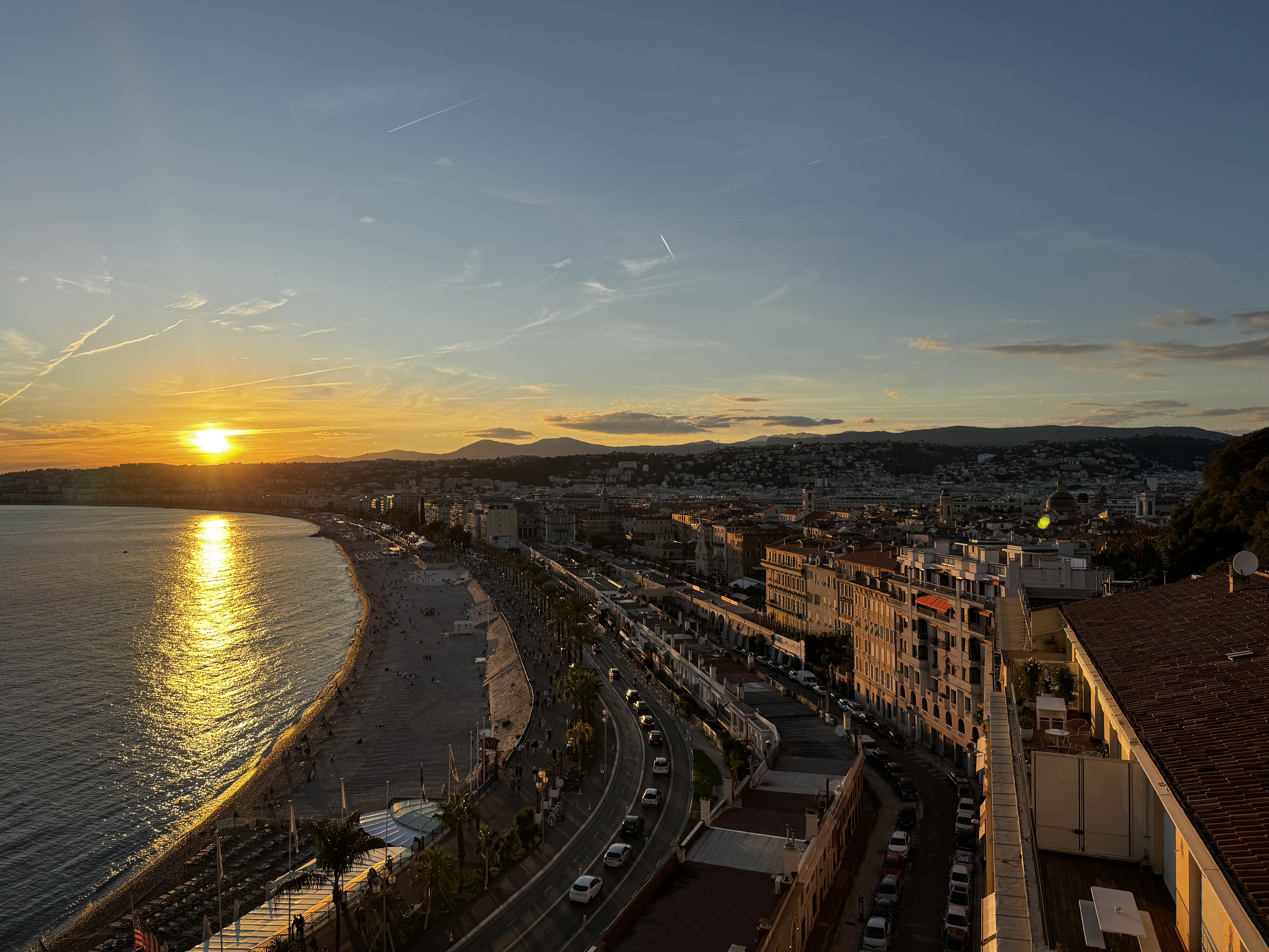 The next day was actually our only full day in Nice, so we had to make the most of it. We started off at Marché Aux Fleurs - Cours Saleya (a farmer’s market, basically), where we bought various things for a light brunch on the beach. Nice is unique because instead of sand, it has pebbles on its beaches; the ebb and flow of the waves pulling the rocks into the water was so satisfying, and it was relaxing to lie on the shore and take it all in. I forgot to mention that the weather was perfect when we went: not too hot or cold, even at night, and it was sunny all day. Afterwards, we went to Hobo Coffee, where we did some people-watching while sitting outside. Taking a break to decompress like this is very important on trips where you try to cram everything into a couple of days! Next, we went up to the Colline du Château, which offered the most gorgeous view of the city. Be prepared to walk a bit, though… To end the day, we went to Babel Babel, where we had another lovely outdoor meal while the sun set. I once again forgot the name of what I ate... Overall, Nice is a perfect location for a three-day weekend trip, especially if you are studying in Germany (the flight will be quick and cheap!). I recommend going in late September to get the most out of the good weather!