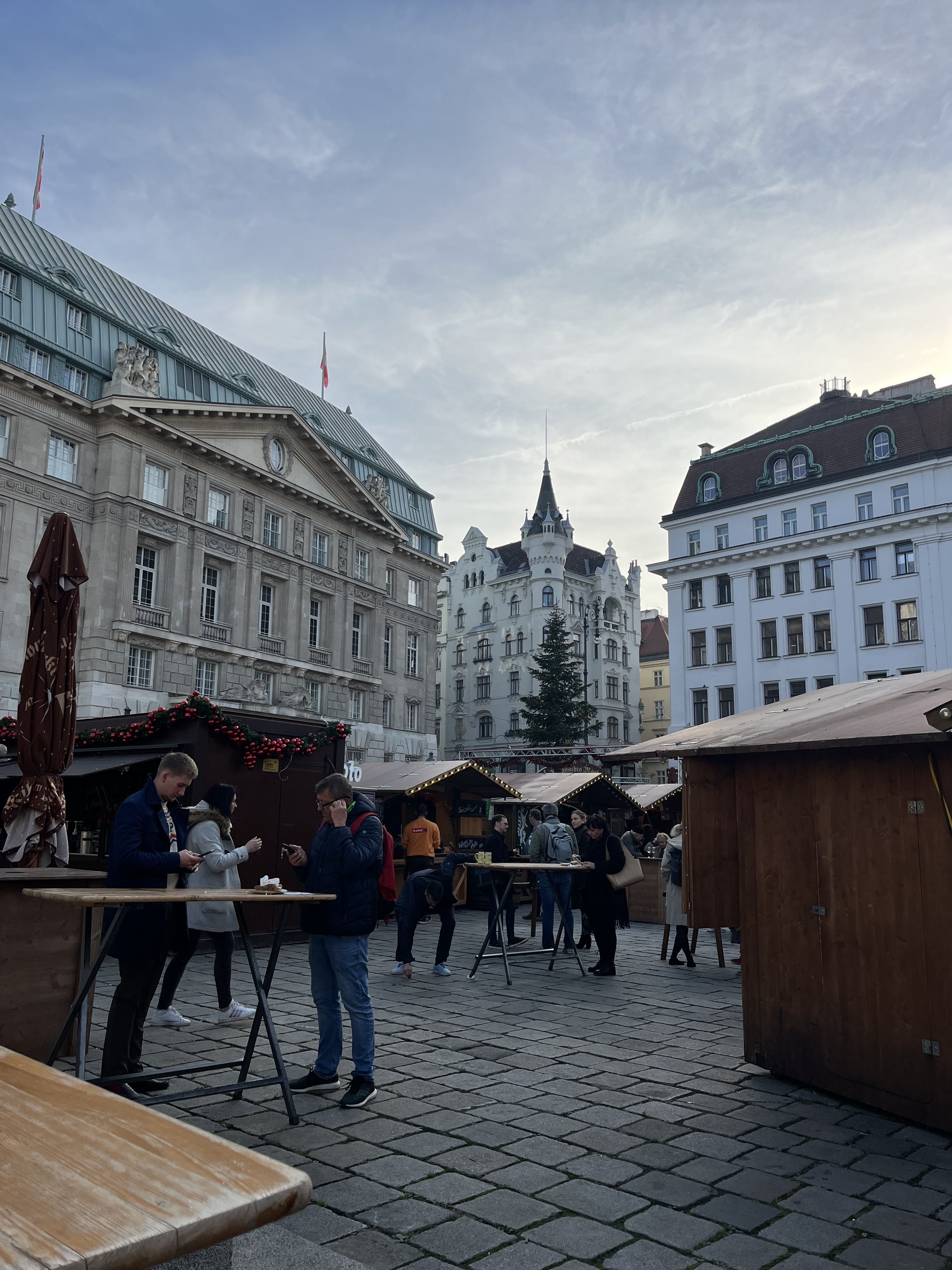The University of Vienna’s Christmas market is also one of my favorites. It seems so cool that this market is on a college campus! I wish that my home university had a Christmas market like this. This market is super popular among locals, and so there was definitely quite the crowd both times so far that I’ve gone. I tried Maroni (roasted chestnuts) for the first time while visiting this market. I wasn’t sure that I was going to like them, and wasn’t quite sure what to expect texture-wise, but they were actually quite fun to eat! The outside of the Maroni is super hot, so you have to wait a few minutes before cracking them open, but the inside is the perfect temperature. I recommend that everyone give them a try! The Uni Wien market is one of my favorites because it has the vibes of a larger, more touristy market like the ones at the Rathausplatz or at the Stephansdom, but without the hordes of tourists. It is a great experience to hear locals talking in German around you, enjoying their punsch with friends and family, and making a fun evening out of going to the Christmas markets.