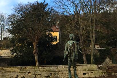 We arrived in the villiage and our trek was immediately rewarded. Auvers-sur-Oise is such a lovely, quaint, and historic town. I was in love! This was the first out-of-Paris I experience I had so it was very cool to see the contrast. It had such small roads, mostly cobblestone, with old stone buildings and cast iron fences. It was a little chilly, but the weather was perfect for a picturesque view of the town. The sky was looming with grey clouds, but allowed streaks of sunlight to peak through, creating a beautiful backdrop. The simplicity of our day astounds me because it was truly amazing and unforgettable. Meandering through the winding, hilly cobblestone streets was wonderful.
