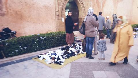 All along the medina wall, people set up shop on the sidewalk on both sides. They sell anything you can think of. Just don't step on the merchandise.